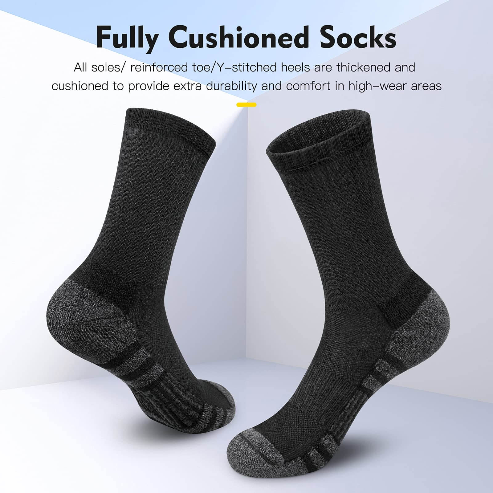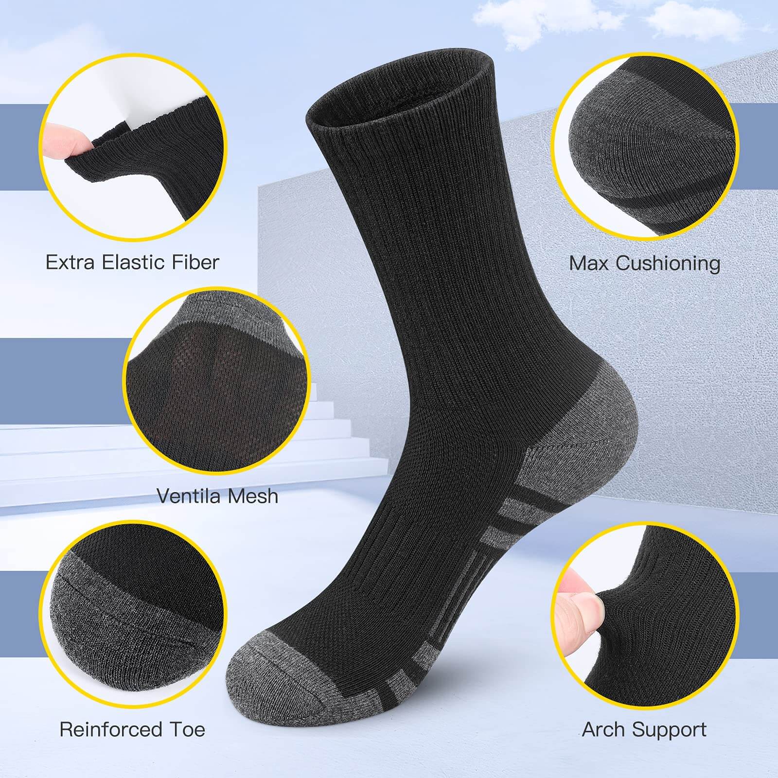 - Breathable Moisture Wicking - Our crew socks desigened with ventilation mesh to enhance air flow and made of special fabric that quickly absorbs and wicks the moisture away to keep dry